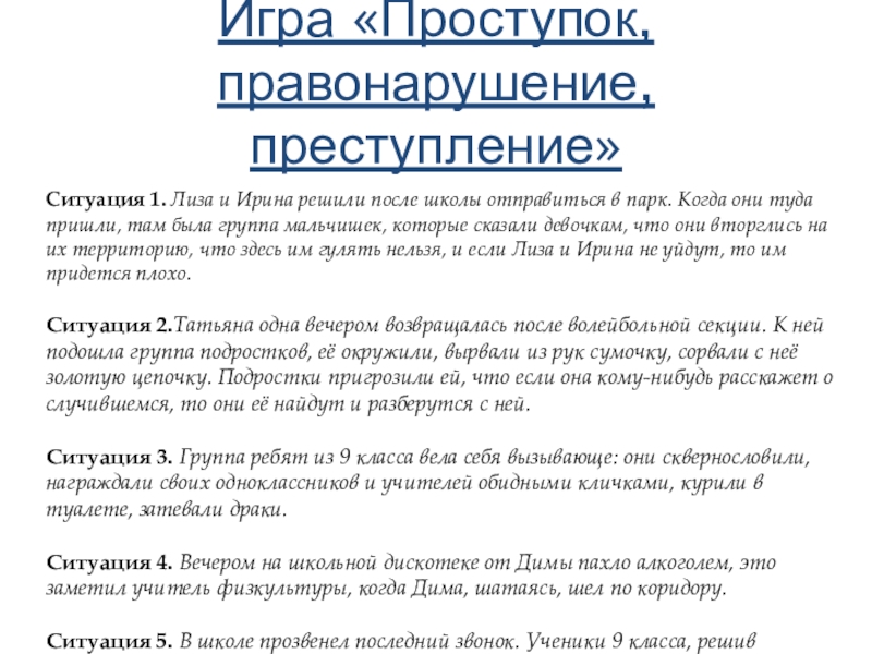 Слайд 35Игра «Проступок, правонарушение, преступление»