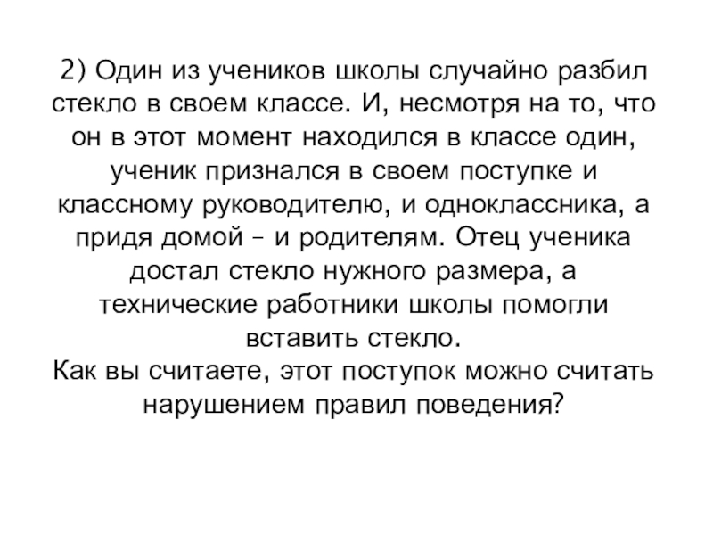 2) Один из учеников школы случайно разбил стекло в своем классе.