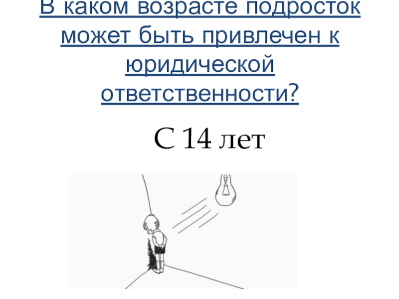 Слайд 10Какую юридическую ответственность несет подросток в 14 лет?