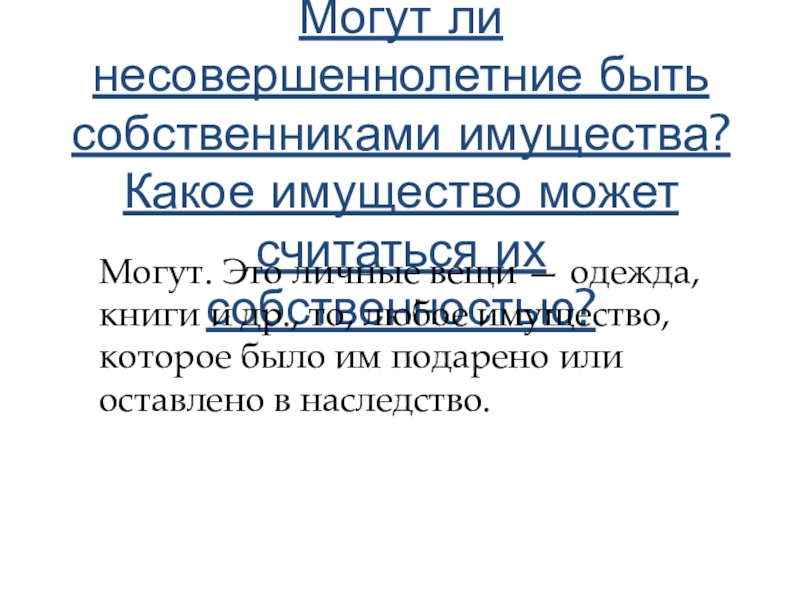 Слайд 28Могут ли несовершеннолетние быть собственниками имущества? Какое имущество может считаться их