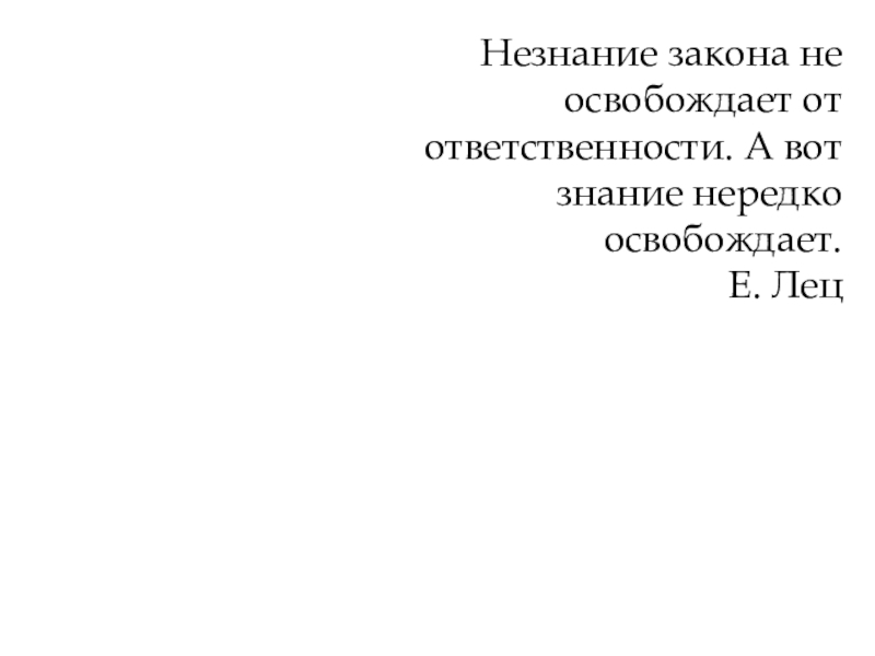 Слайд 37Незнание закона не освобождает от ответственности. А вот знание нередко освобождает.