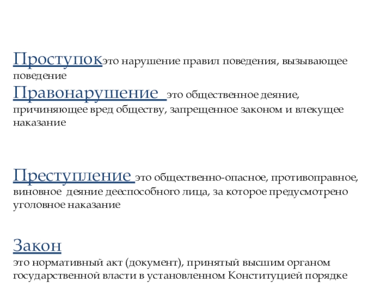 Проступокэто нарушение правил поведения, вызывающее поведение