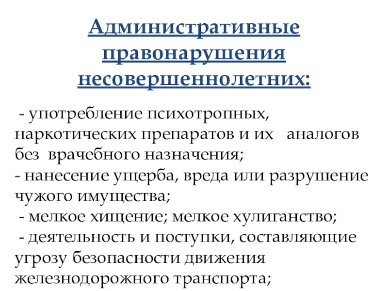 - деятельность и поступки, составляющие угрозу безопасности движения железнодорожного транспорта;