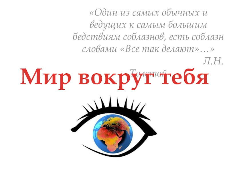Слайд 1«Один из самых обычных и ведущих к самым большим бедствиям соблазнов,