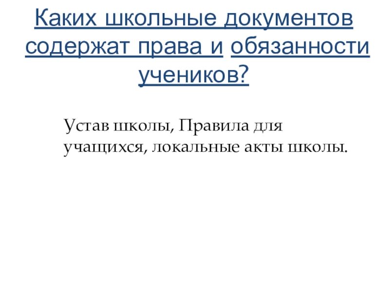 Слайд 22Каких школьные документов содержат права и обязанности учеников?