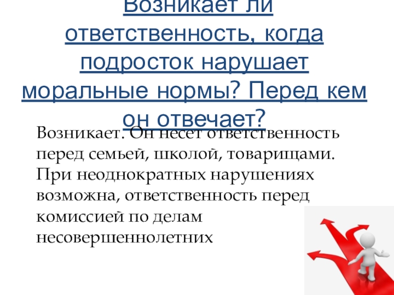 Слайд 6 Возникает ли ответственность, когда подросток нарушает моральные нормы? Перед кем