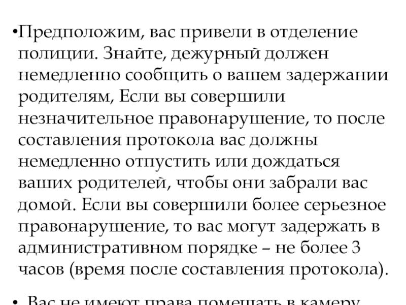 Слайд 34Предположим, вас привели в отделение полиции. Знайте, дежурный должен немедленно сообщить о