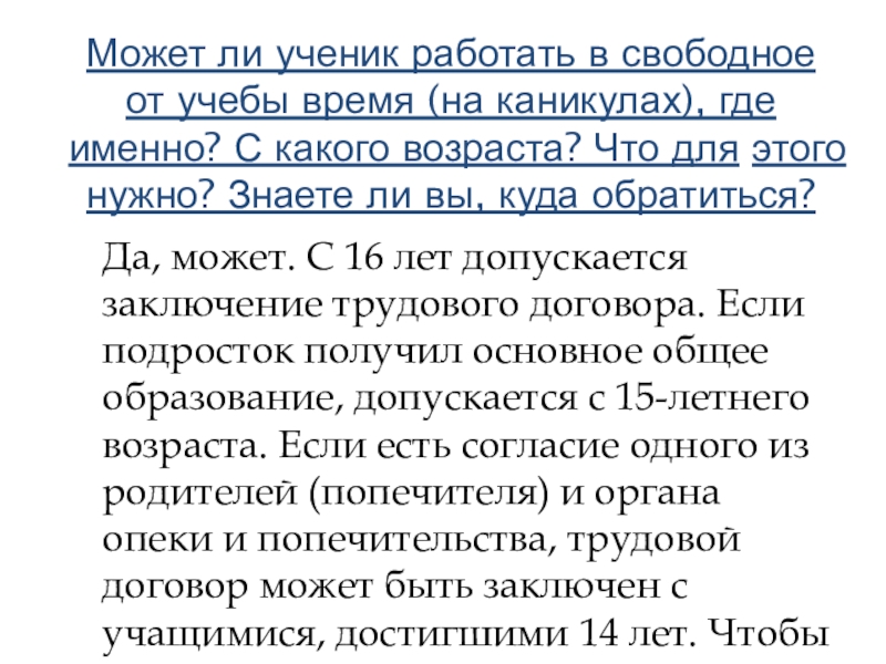 Слайд 24Может ли ученик работать в свободное от учебы время (на каникулах),
