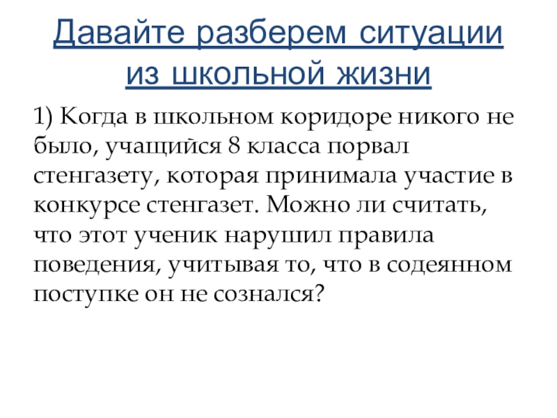 Слайд 25Давайте разберем ситуации из школьной жизни