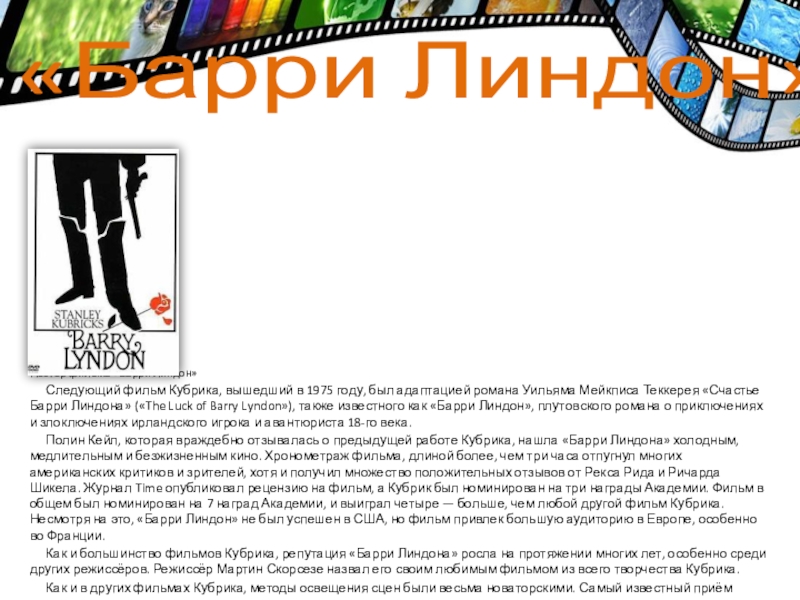 Следующий фильм Кубрика, вышедший в 1975 году,