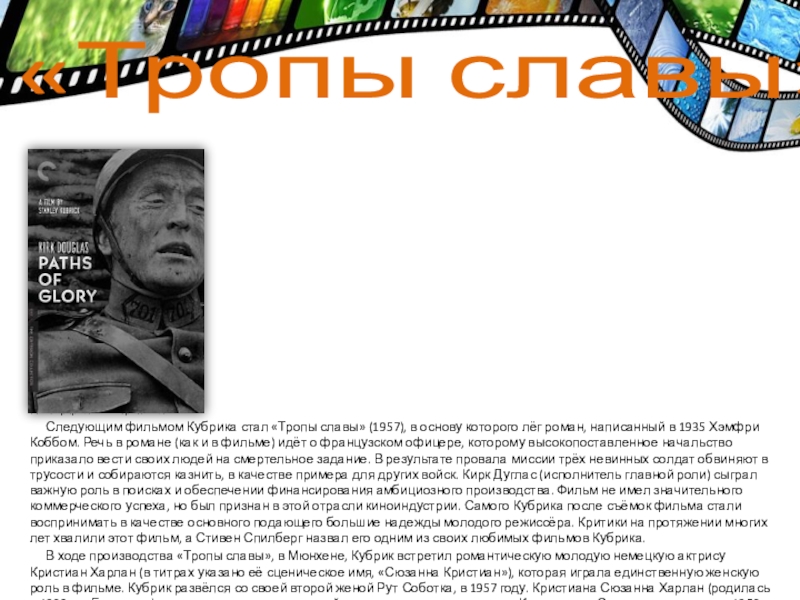 Следующим фильмом Кубрика стал «Тропы славы» (1957),