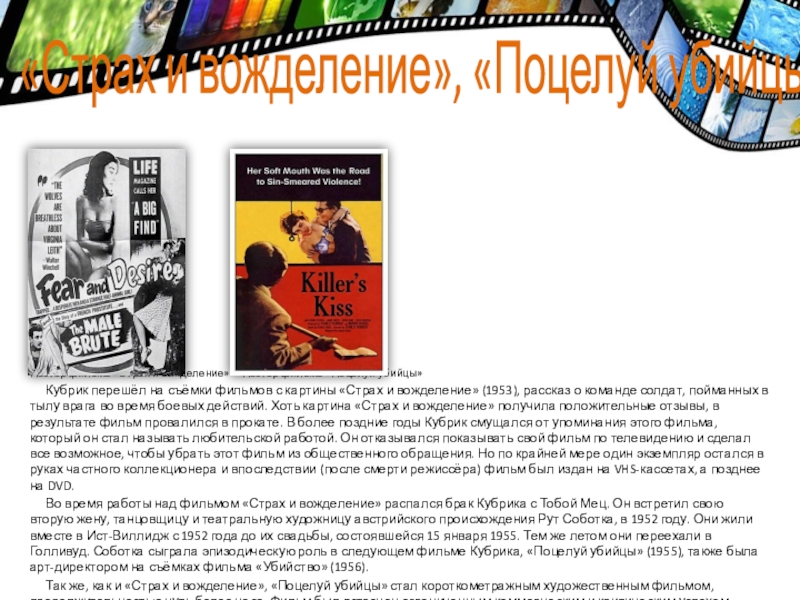Слайд 5«Страх и вожделение», «Поцелуй убийцы»