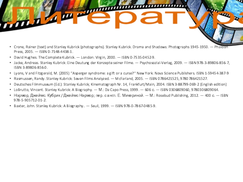 LoBrutto, Vincent. Stanley Kubrick: A Biography. — М.: Da Capo Press, 1999. — 606 с. — ISBN 0306809060, 9780306809064.
