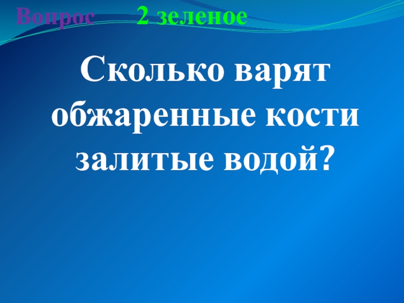2 зеленоеВопрос Сколько варят обжаренные кости залитые водой?