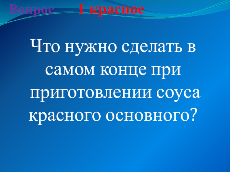 1 красноеВопрос Что нужно сделать в самом конце при приготовлении соуса красного основного?