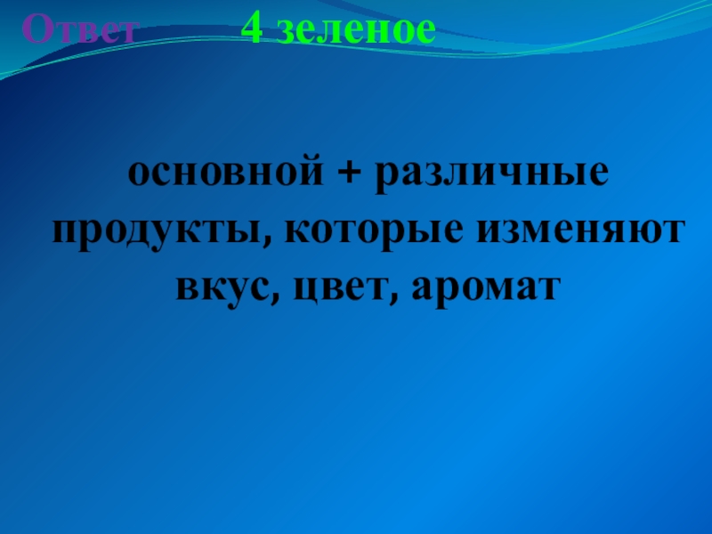 4 зеленоеОтветосновной + различные продукты, которые изменяют вкус, цвет, аромат