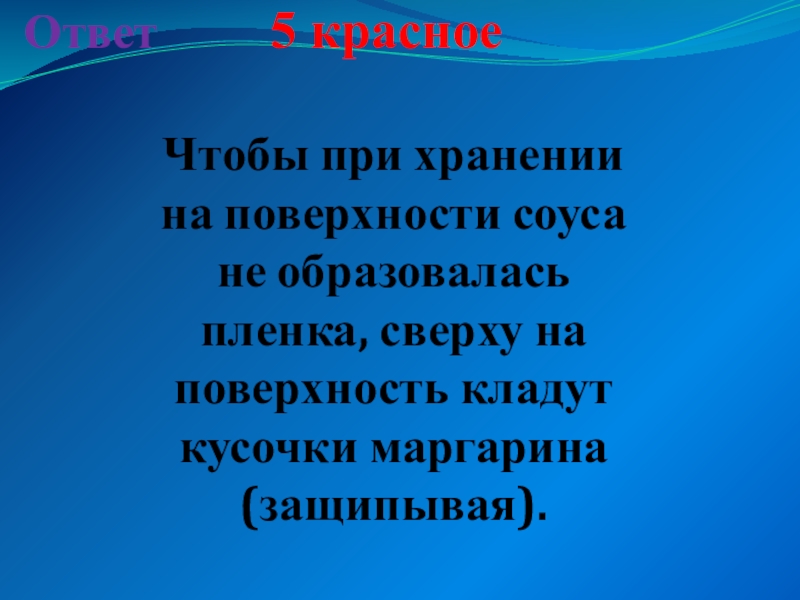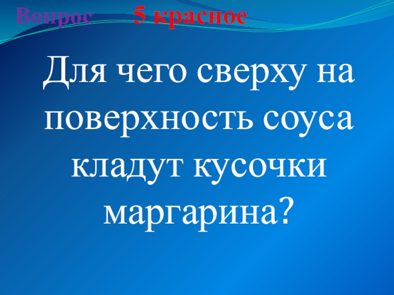5 красноеВопрос Для чего сверху на поверхность соуса кладут кусочки маргарина?