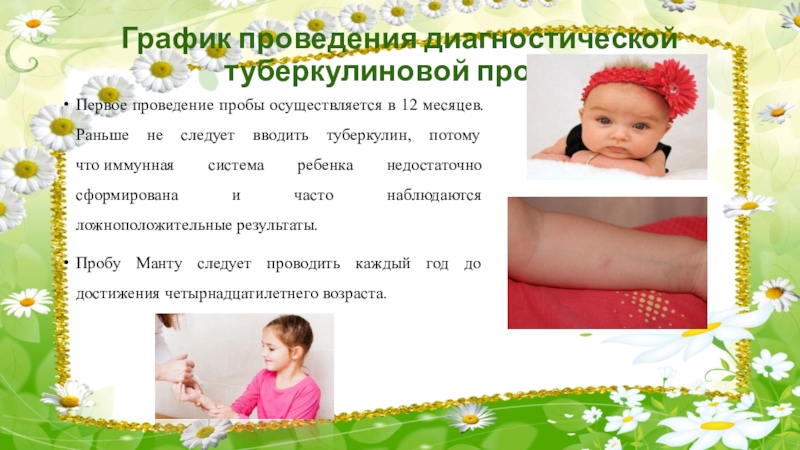 Слайд 9График проведения диагностической туберкулиновой пробы