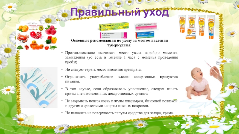 Основные рекомендации по уходу за местом введения туберкулина: