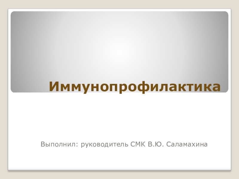 Иммунопрофилактика Выполнил: руководитель СМК В.Ю. Саламахина