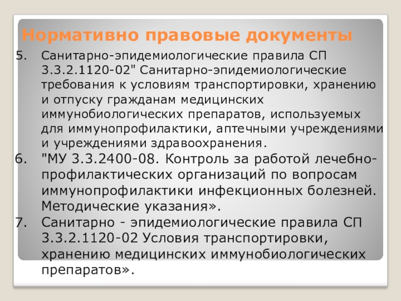 Санитарно - эпидемиологические правила СП 3.3.2.1120-02 Условия транспортировки, хранению медицинских иммунобиологических препаратов».