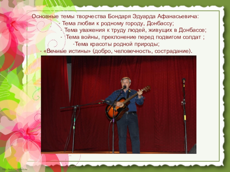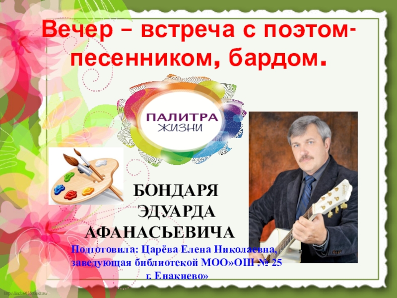 Это сайт презентаций, где можно хранить и обмениваться своими презентациями, докладами, проектами, шаблонами в формате PowerPoint с другими пользователями. Мы помогаем школьникам, студентам, учителям, преподавателям хранить и обмениваться учебными материалами.
