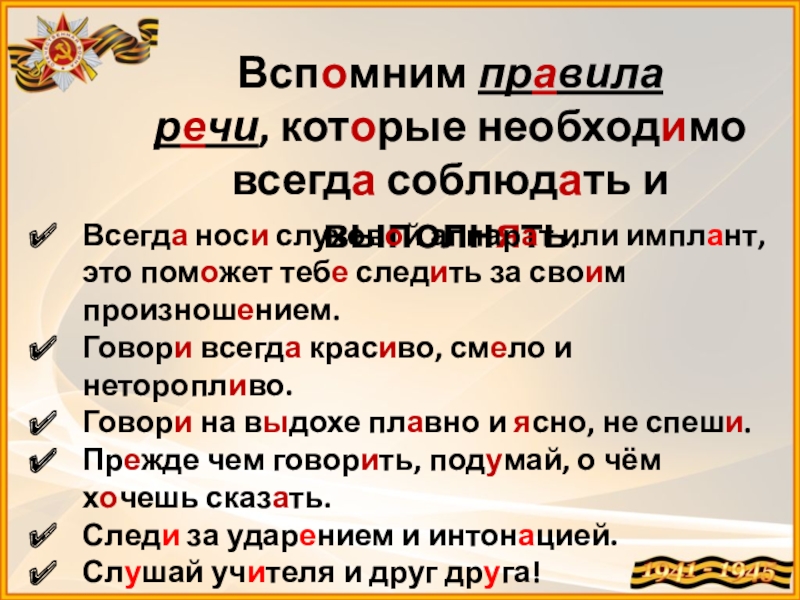 Слайд 2Вспомним правила речи, которые необходимо всегда соблюдать и выполнять.