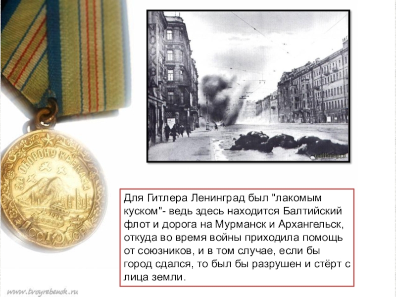 Слайд 6Для Гитлера Ленинград был "лакомым куском"- ведь здесь находится Балтийский флот