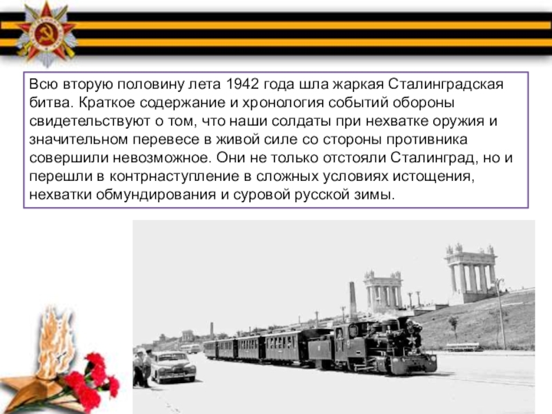 Слайд 16Всю вторую половину лета 1942 года шла жаркая Сталинградская битва. Краткое
