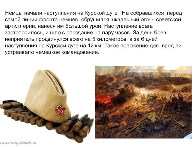 Слайд 21Немцы начали наступления на Курской дуге. На собравшихся перед самой линии