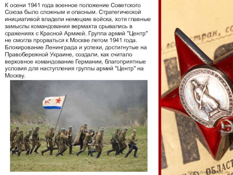Слайд 8К осени 1941 года военное положение Советского Союза было сложным и