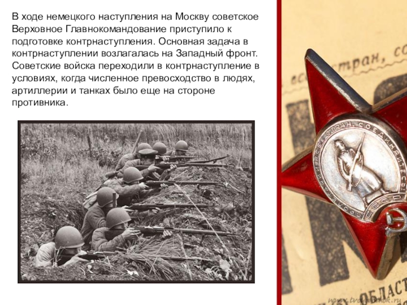 Слайд 10В ходе немецкого наступления на Москву советское Верховное Главнокомандование приступило к
