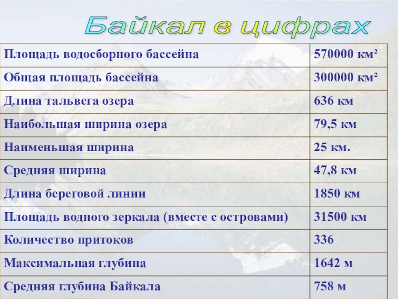 Одна пятая часть пресноводного запаса планеты содержится в Байкале.