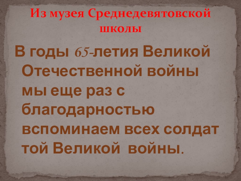Слайд 17В годы 65-летия Великой Отечественной войны мы еще раз с благодарностью