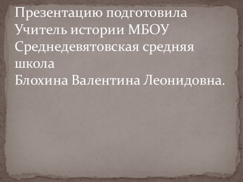 Слайд 24Презентацию подготовила Учитель истории МБОУ Среднедевятовская средняя школа
