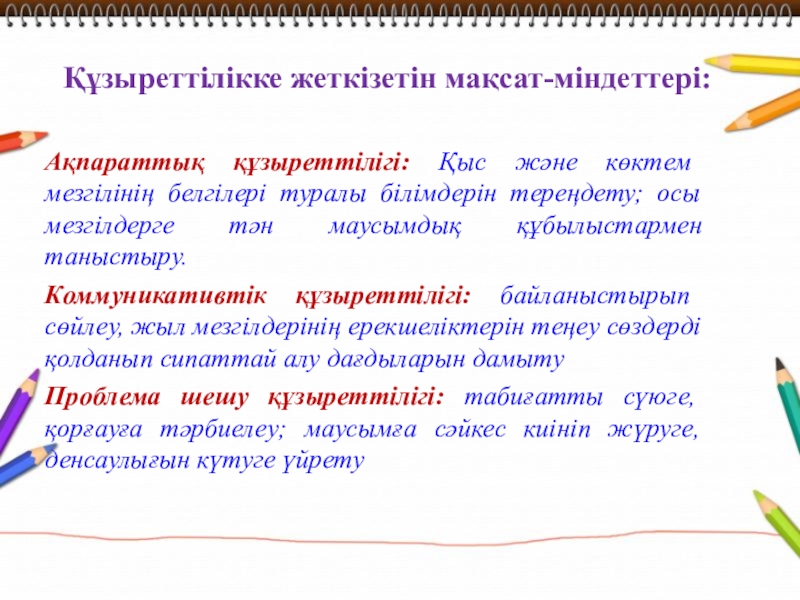 Құзыреттілікке жеткізетін мақсат-міндеттері: