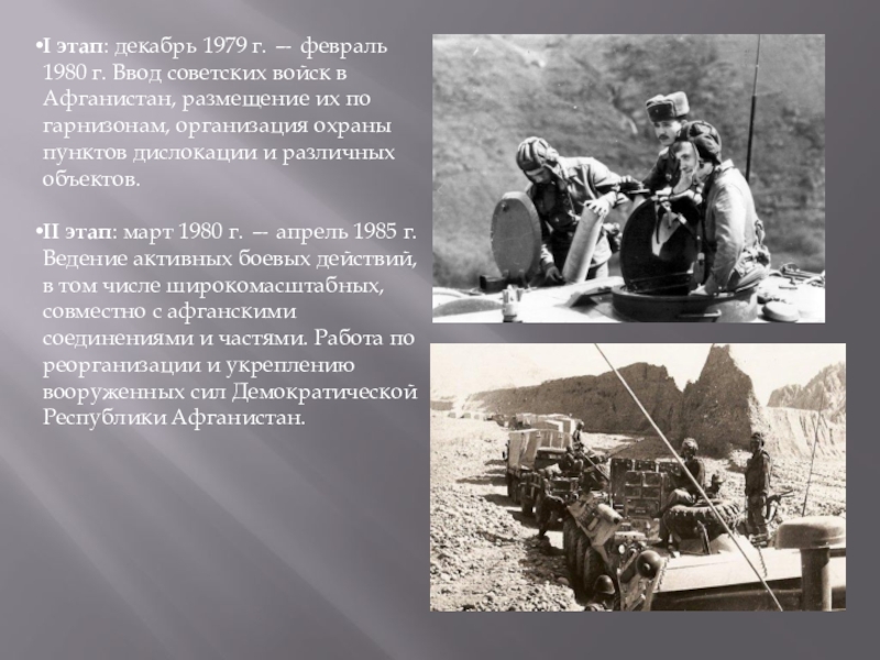 Слайд 5I этап: декабрь 1979 г. — февраль 1980 г. Ввод советских