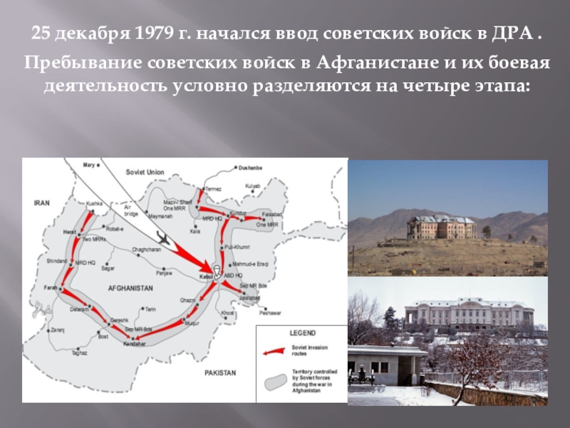 Слайд 425 декабря 1979 г. начался ввод советских войск в ДРА .