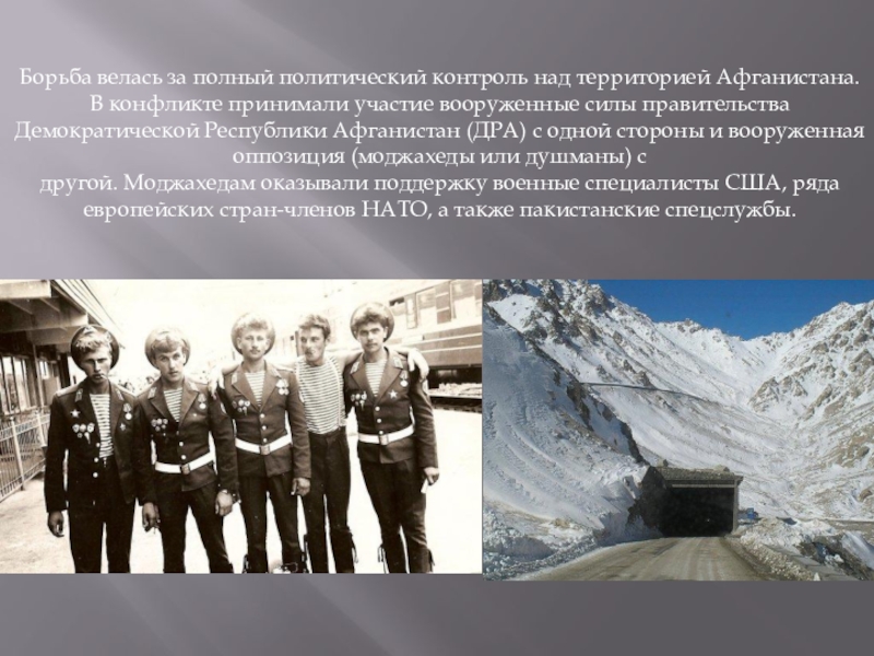 Слайд 3Борьба велась за полный политический контроль над территорией Афганистана. В конфликте
