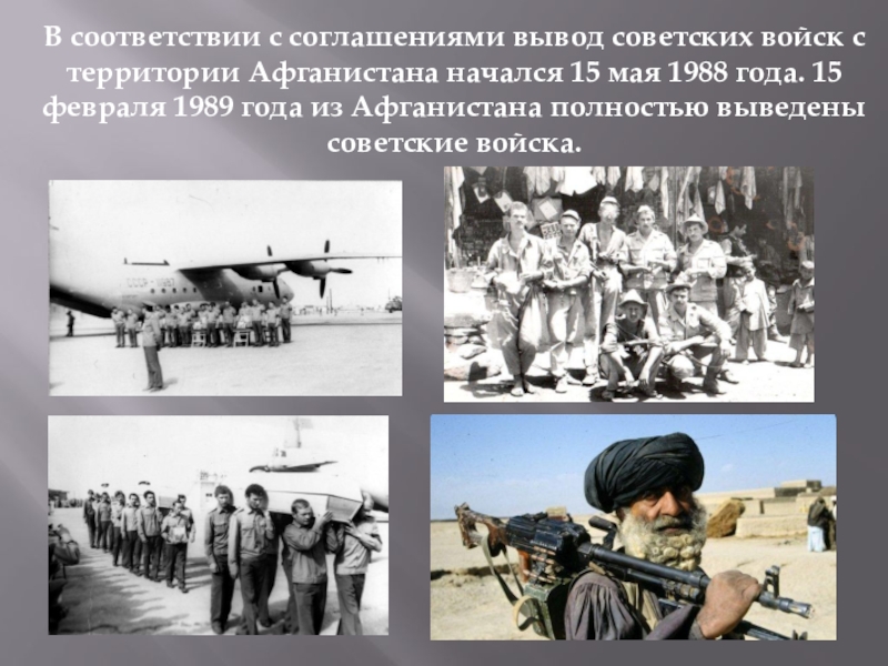 Слайд 11В соответствии с соглашениями вывод советских войск с территории Афганистана начался
