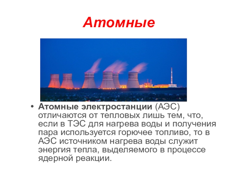 Атомные электростанции (АЭС) отличаются от тепловых лишь тем, что, если в ТЭС