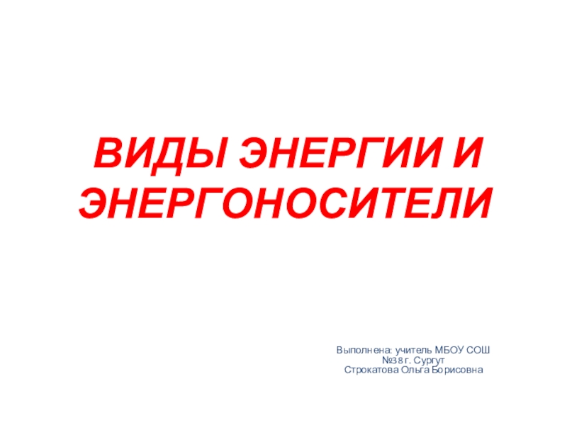 Слайд 1 ВИДЫ ЭНЕРГИИ И ЭНЕРГОНОСИТЕЛИ