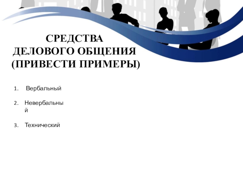 Средства делового общения (привести примеры) Вербальный НевербальныйТехнический