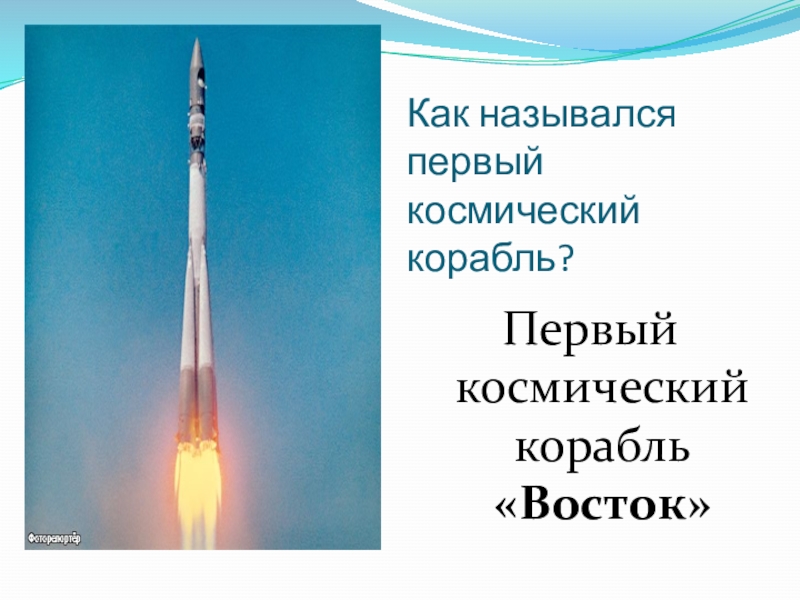 Как назывался первый космический корабль?Первый космический корабль «Восток»