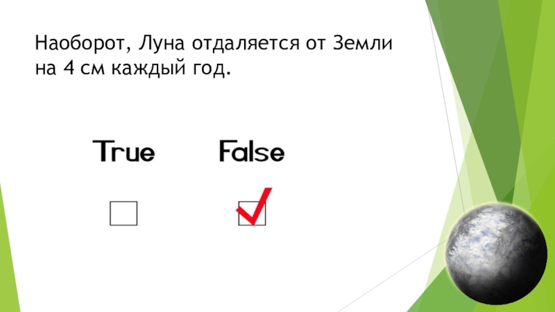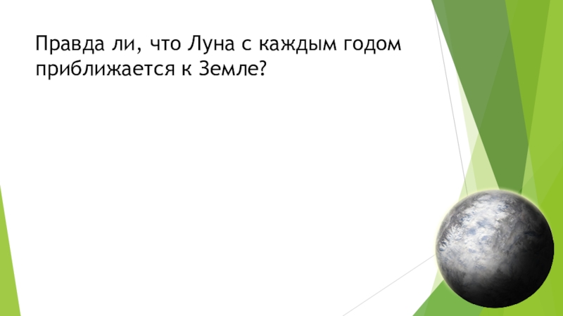 Слайд 36Правда ли, что Луна с каждым годом приближается к Земле?