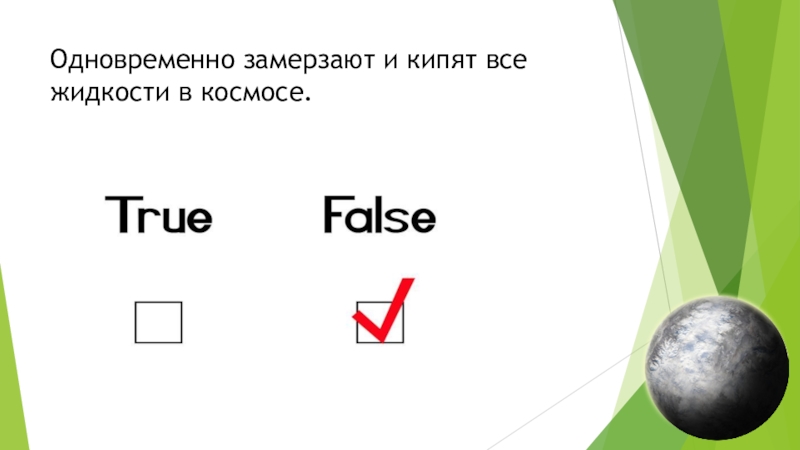 Слайд 35Одновременно замерзают и кипят все жидкости в космосе.