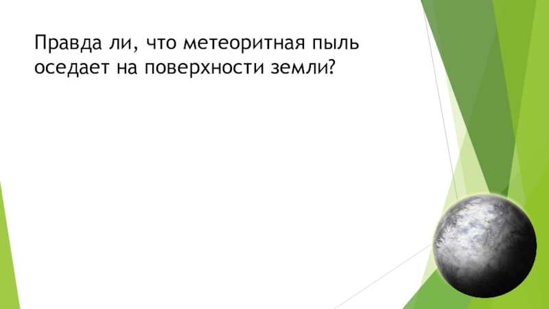 Слайд 38Правда ли, что метеоритная пыль оседает на поверхности земли?
