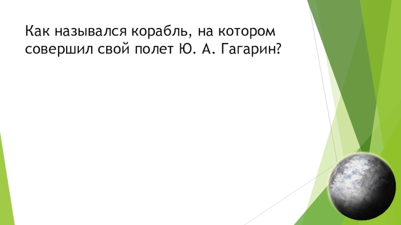 Слайд 25Как назывался корабль, на котором совершил свой полет Ю. А. Гагарин?