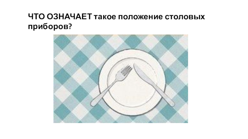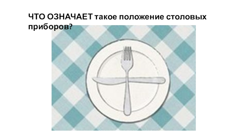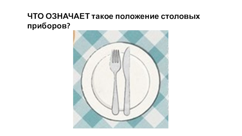 Слайд 31ЧТО ОЗНАЧАЕТ такое положение столовых приборов?