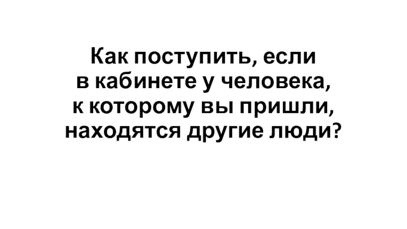Слайд 6Как поступить, если в кабинете у человека, к которому вы пришли, находятся другие люди?